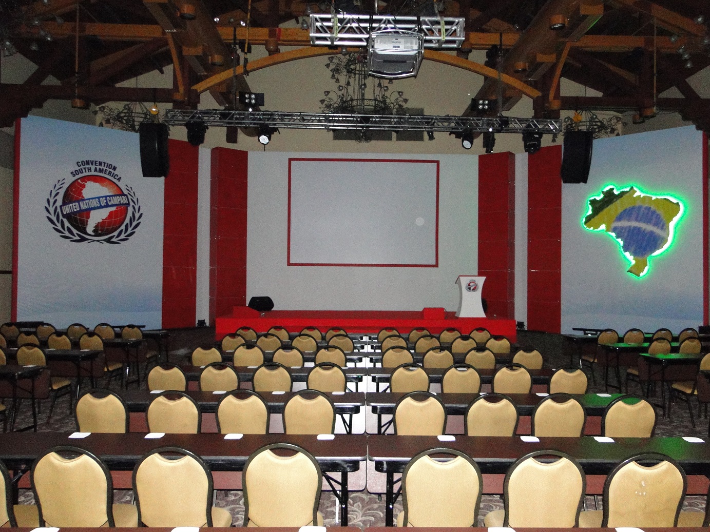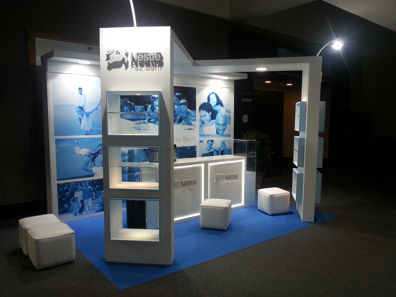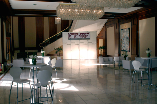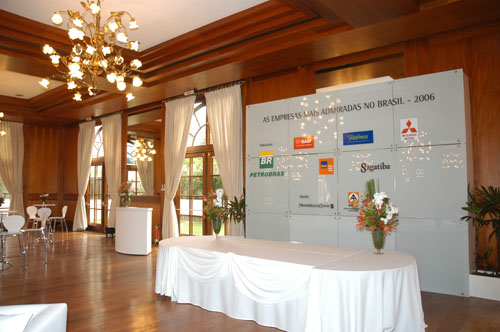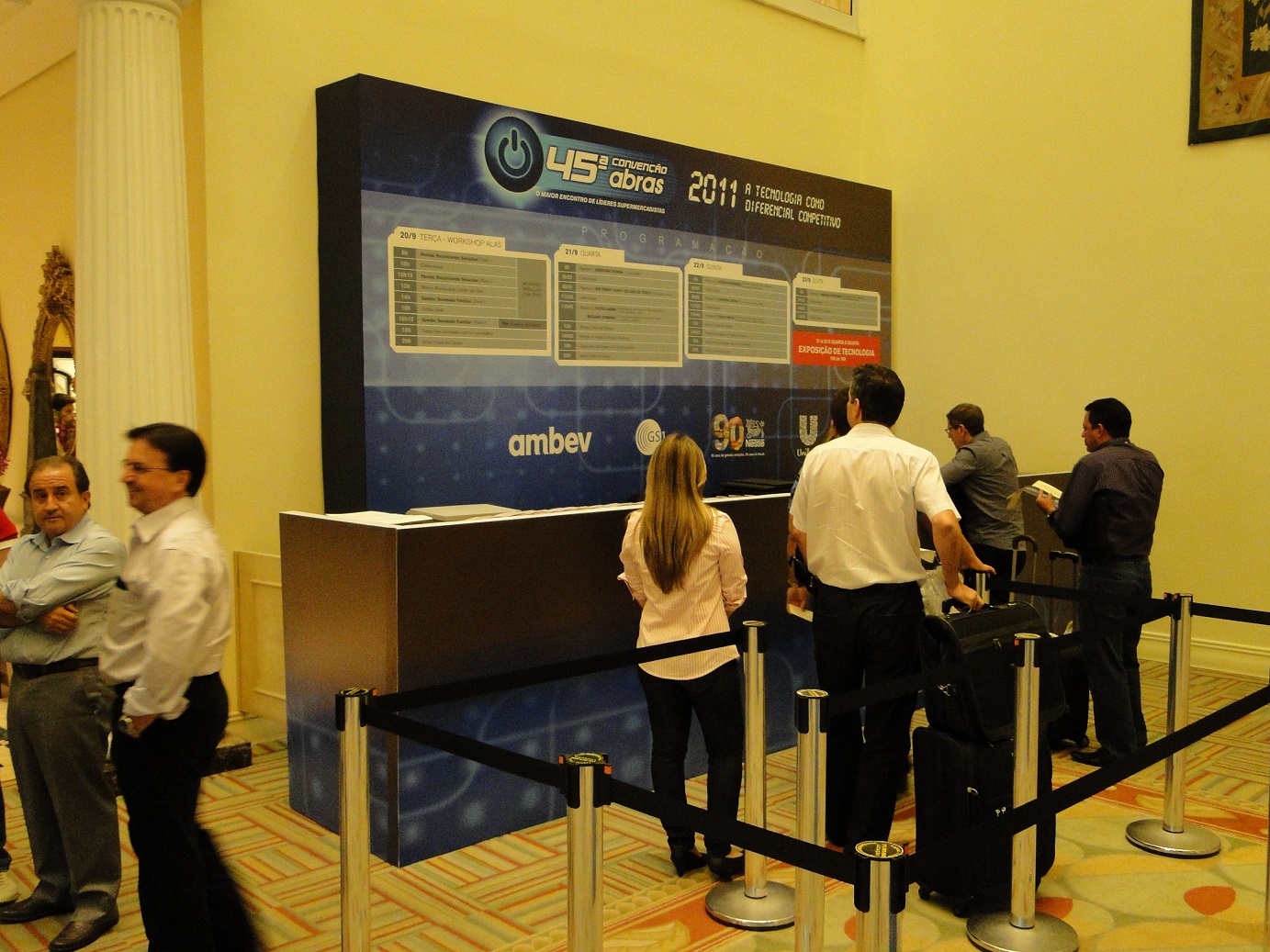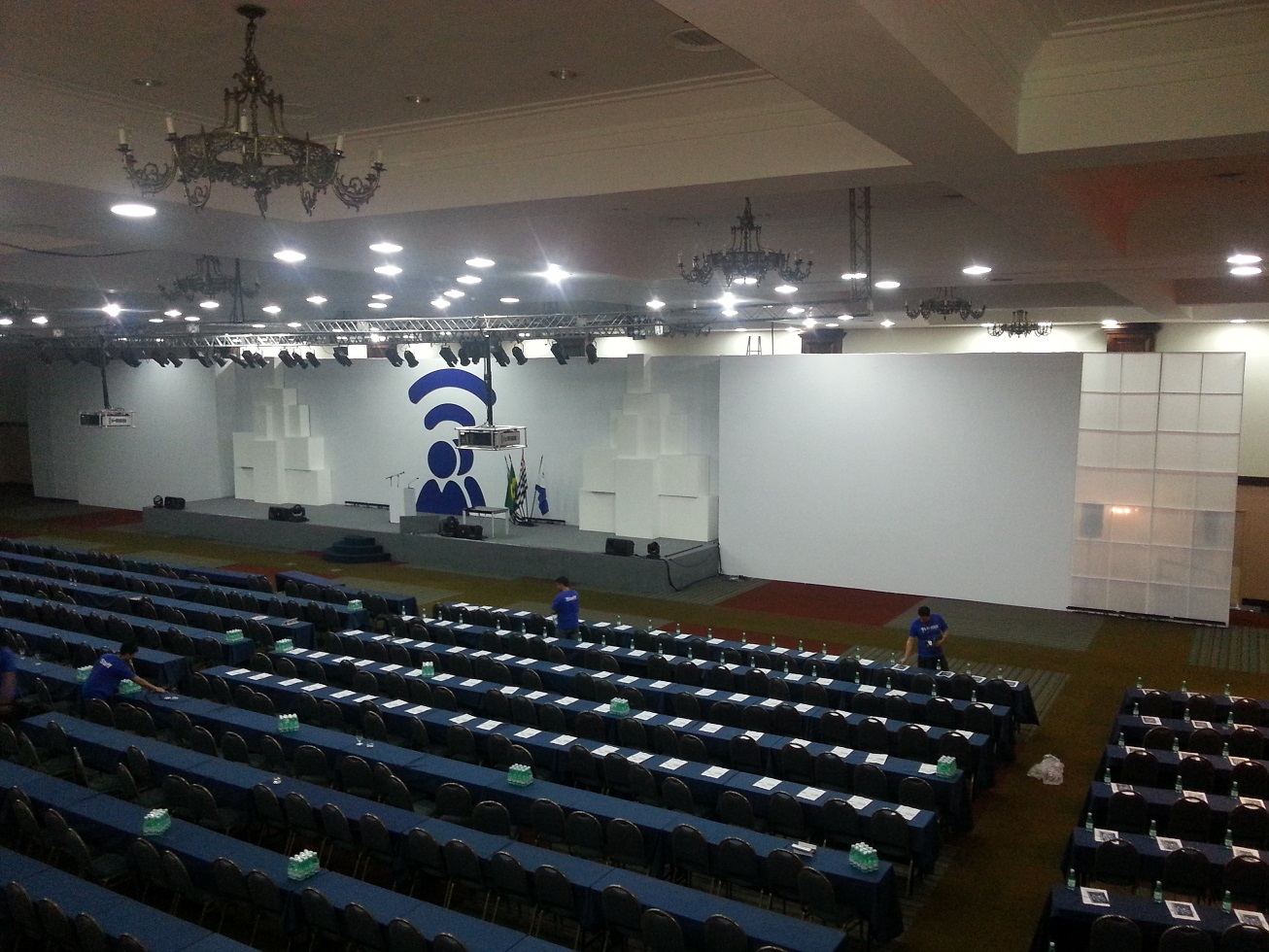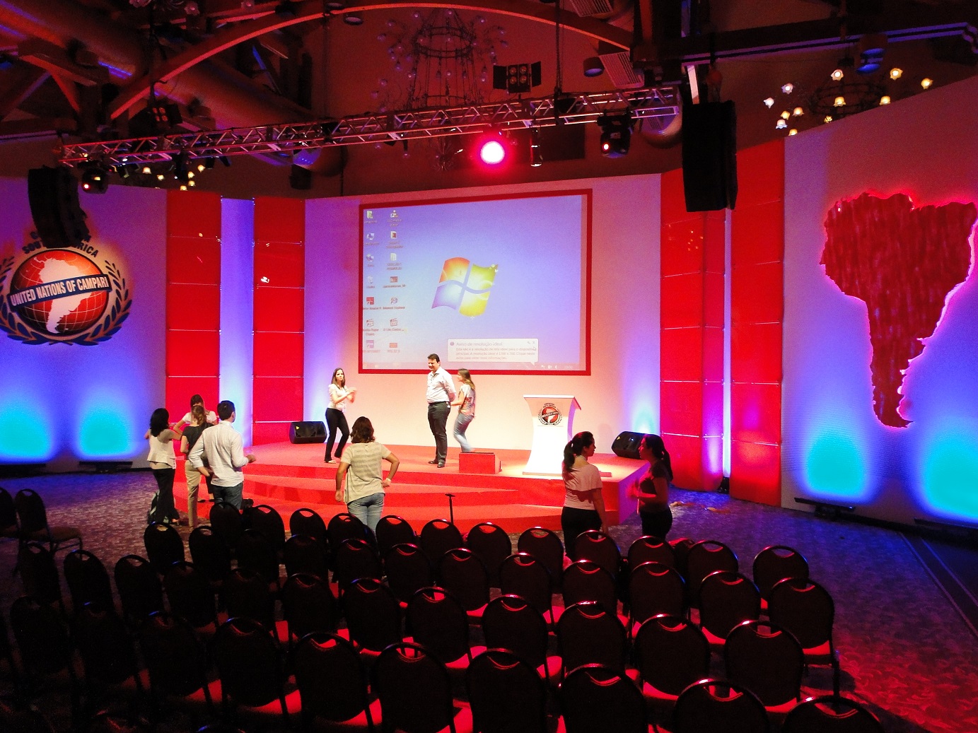 Cenografia de palco e estandes no foyer no Roual Palm Plaza - Campinas, SP.