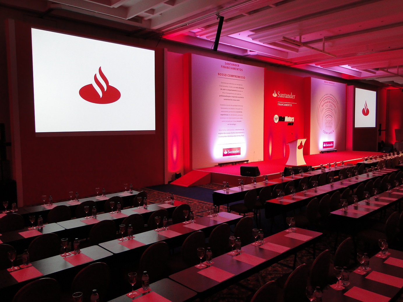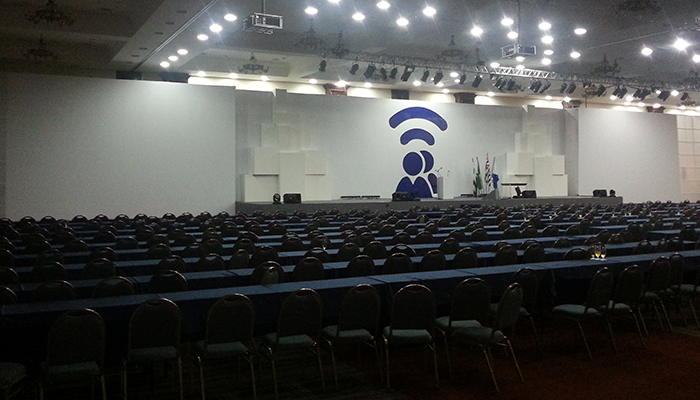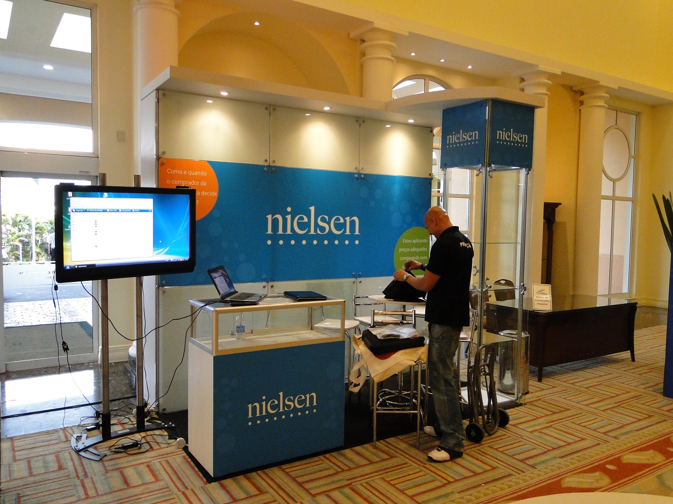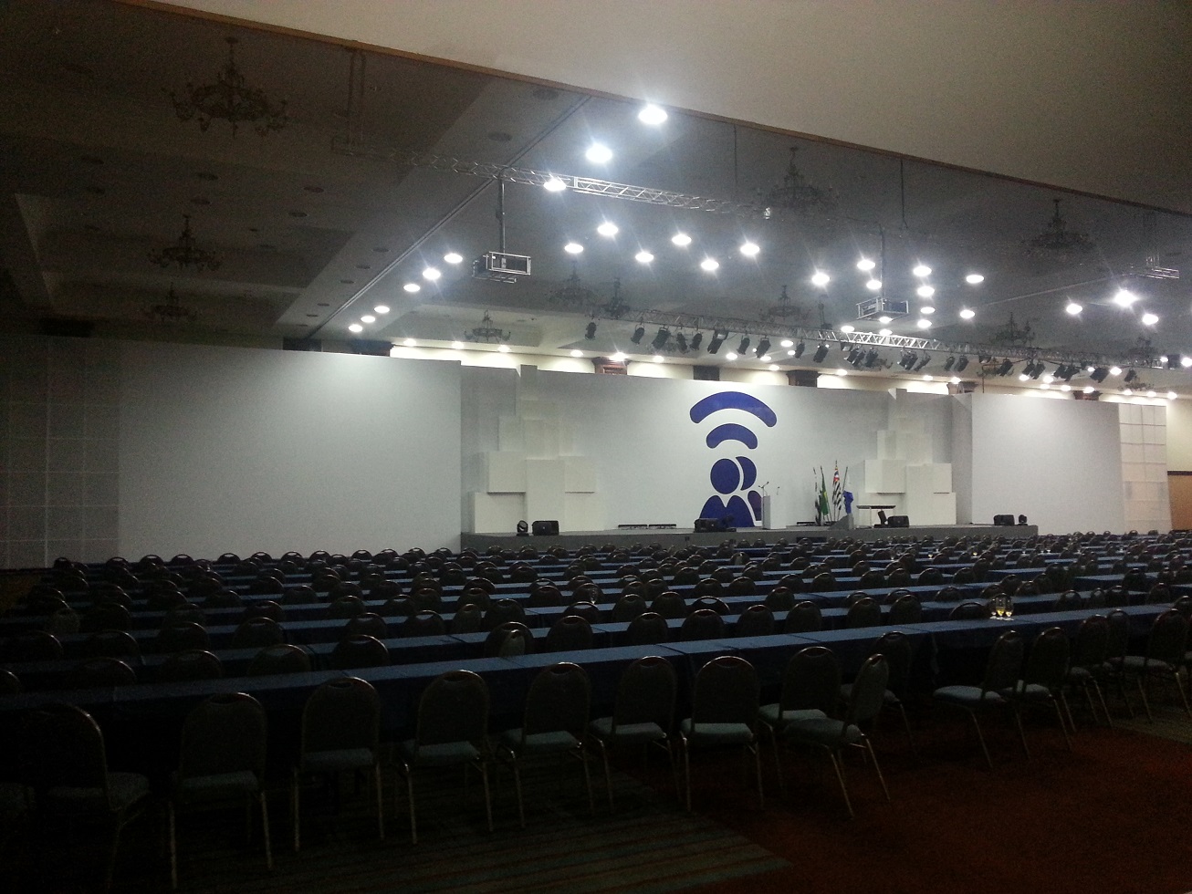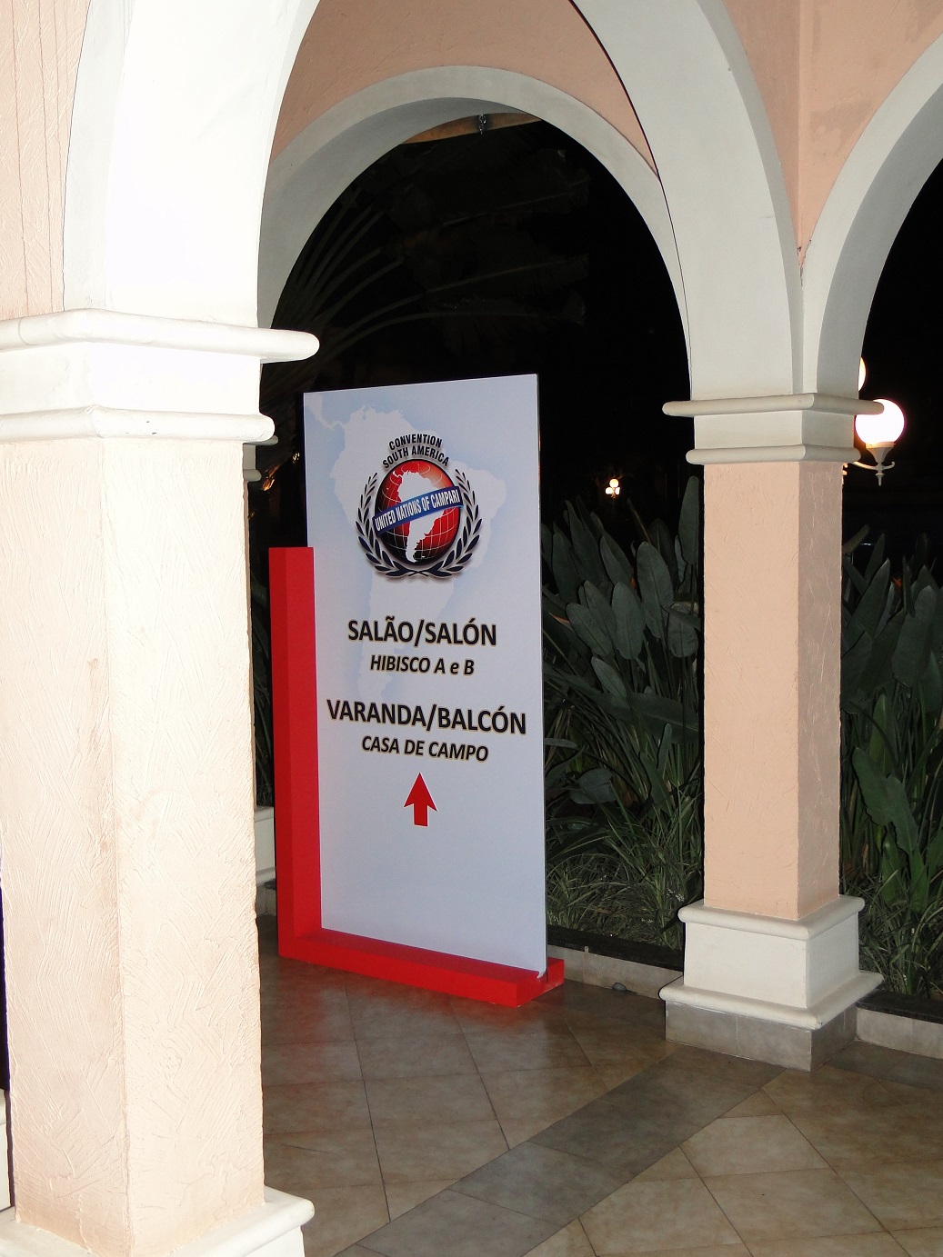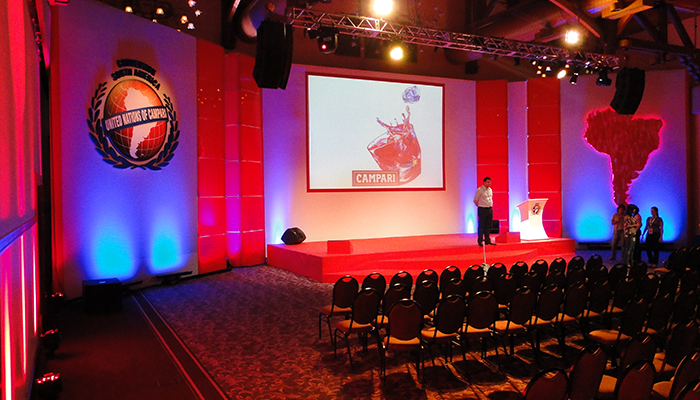 Cenografia de palco e estandes no foyer no Roual Palm Plaza - Campinas, SP.