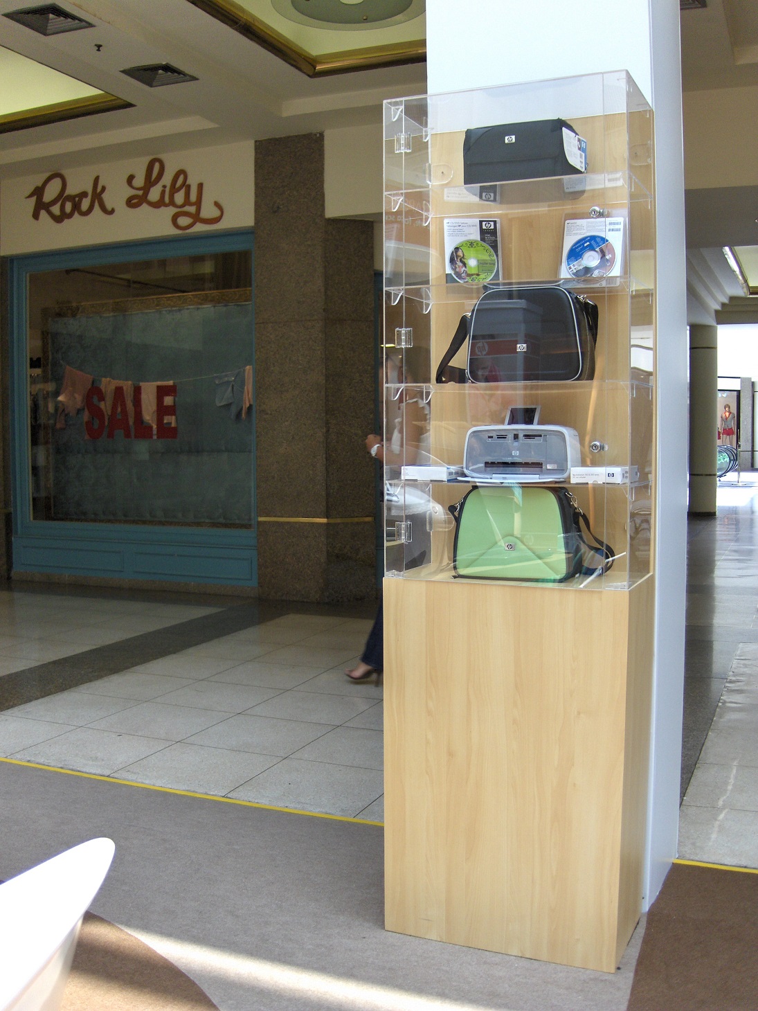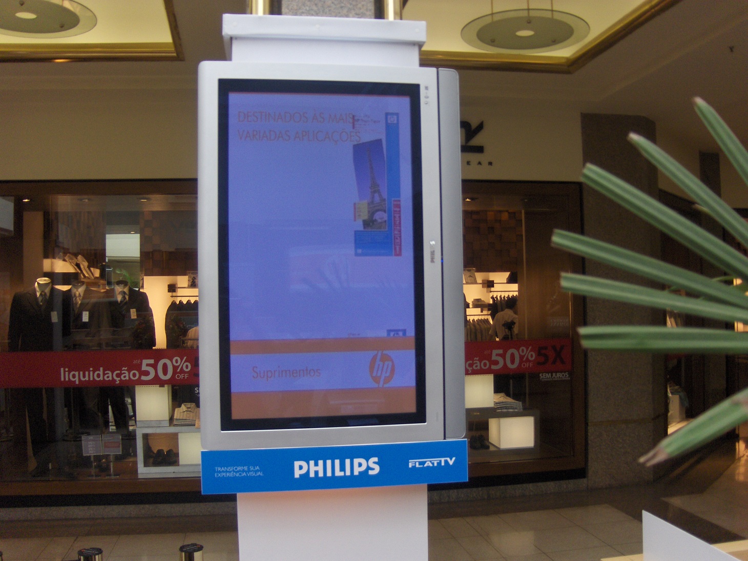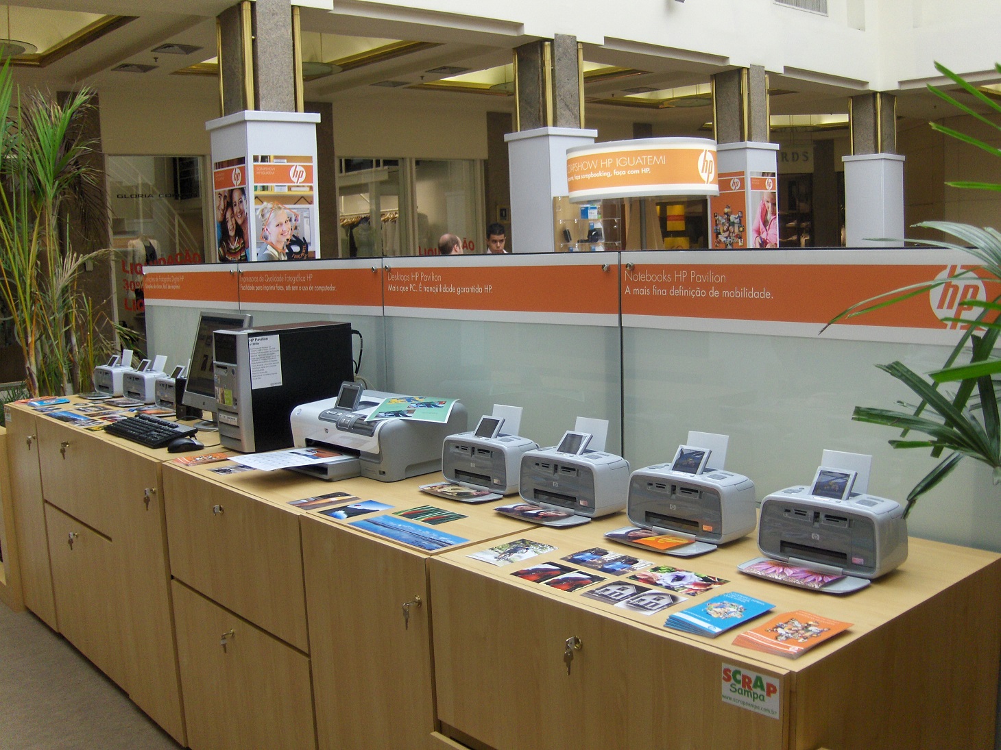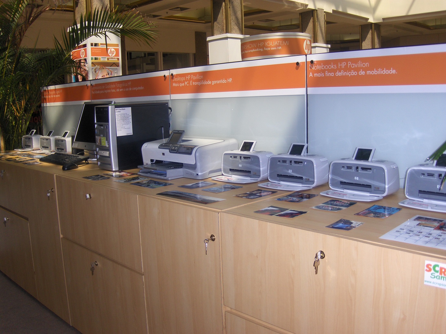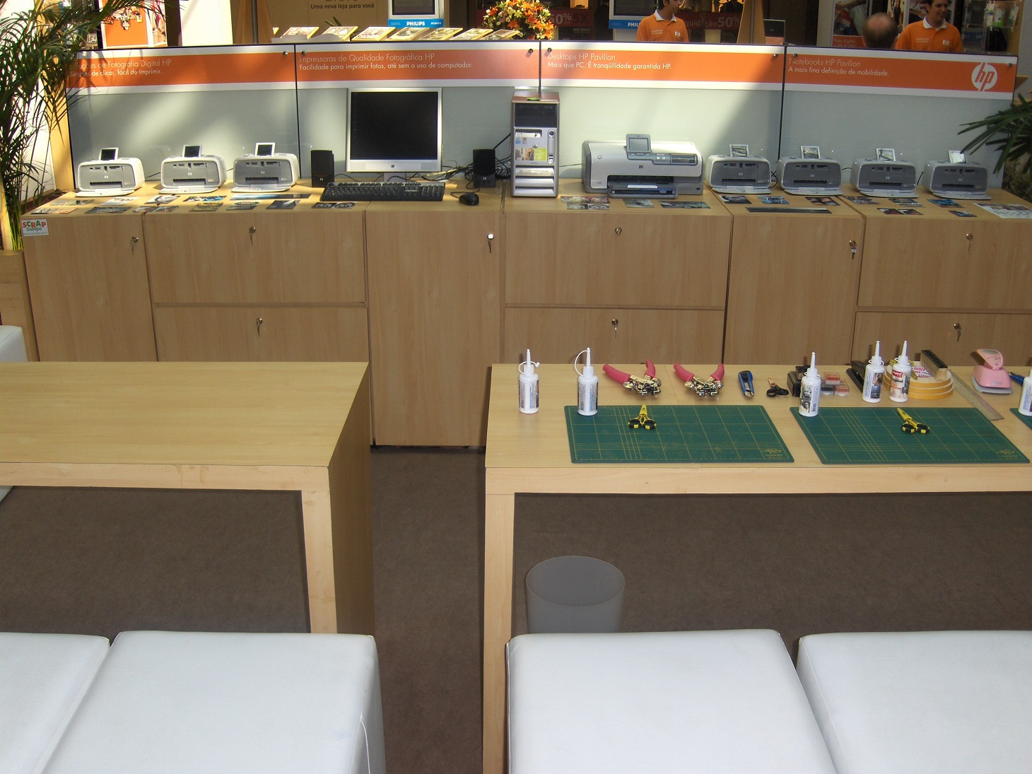 Espaço de convivência com exposição de produtos e mobiliários no Barra Shopping, Rio de Janeiro.